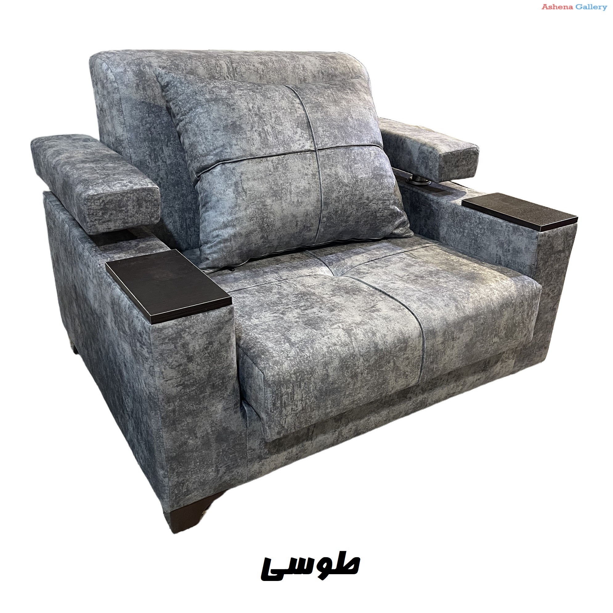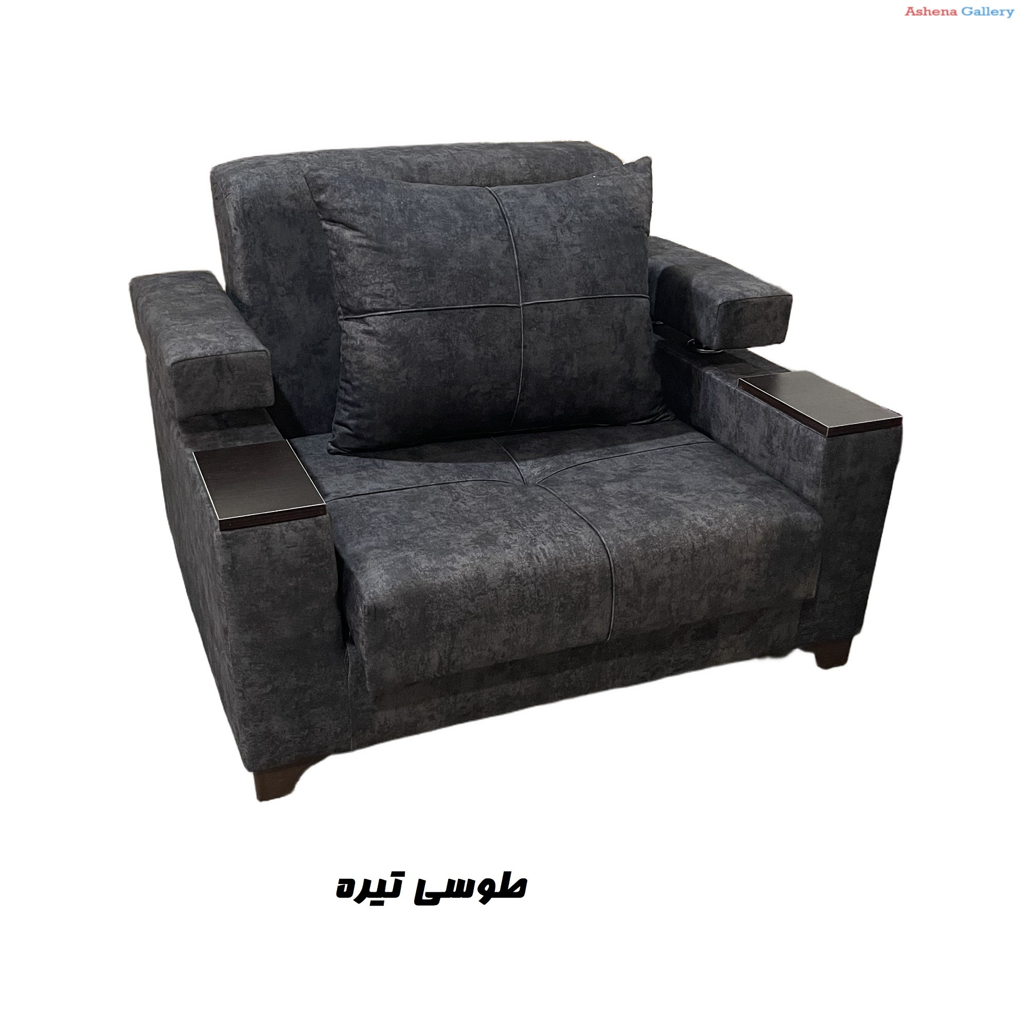 سایر توضیحات: این مبل تک نفره بوده لیکن فضلی نشستن دو نفر رو دارد، اما مناسب خوابیدن دو نفر نیست . رنگ بخش فلزی ثابت بوده و تنوع برای رنگ پارچه است . دقت کنید که مدلها مثل عکس اصلی دسته دار هستن ، اما بدون دسته هم گذاشتیم که معلوم بشه دسته ها قابل باز و بسته شدنه . مبل فقط در حالت کاملا بسته و کاملا باز میایستد، حالت وسطی صرفا نحوه باز و بسته شدن را نشان میدهد